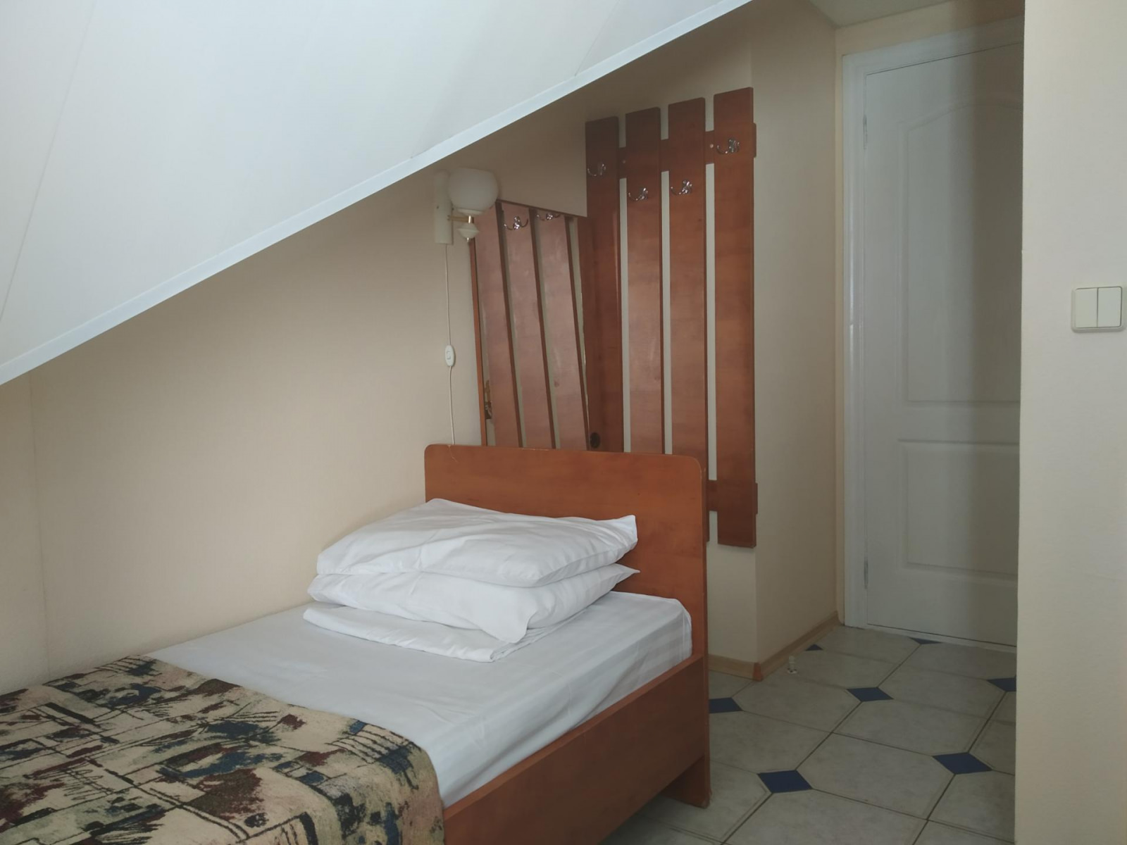 Площадь номера - 9 кв.м. 1 осн. место. Балкон. Мебель: вешалка, зеркало, кровать односпальная, прикроватная тумбочка, столик журнальный, стул, шкаф. Оборудование: система общего кондиционирования, телевизор, холодильник. Санузел. Сервис: смена полотенец (ежедневно), смена постельного белья (1 раз в 5 дней), уборка номера (ежедневно).